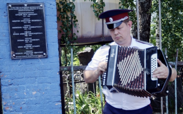 Казаки приехали сюда не с пустыми руками. Они привезли с собой настоящую фронтовую гармонь. Ее художественному руководителю фронтового ансамбля "Братья казаки", заслуженному артисту Республики Ингушетия Андрею Толстякову подарили ополченцы Донецкой Народной Республики в 2017 г. Вместе с этим инструментом, который пришлось практически заново восстанавливать, Андрей с ансамблем проехали по многим местам, где велись боевые действия. Гармонь играла и для бойцов в Сирии. Ее окрестили "боевая подруга "Ивушка". Даже в ее честь песню сочинили. И спустя 78 лет с начала Великой Отечественной войны, для солдат, погибших в те времена на территории Раменского района, снова звучала гармонь. Фронтовую песню «В землянке» исполнил Андрей Толстяков. В эти минуты у собравшихся на глаза навернулись слезы. Не горести, а радости от того, что бойцы, оставшиеся в этой земле, навсегда не ушли в забвение. Они ушли в вечность, но о них знают и помнят.