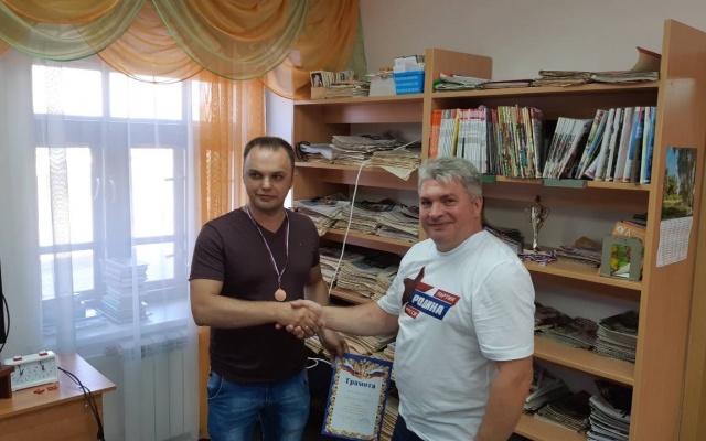 Александр Губарев, кандидат в депутаты Ярославской областной думы от партии "РОДИНА" поздравил жителей поселка с праздником, вручил награды шахматистам, футболистам и волейболистам.